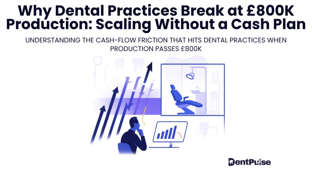 Dental practices run into cash flow trouble at the £800K production mark because costs scale first, cash clarity comes later — and financial discipline hasn’t kept up with clinical growth.